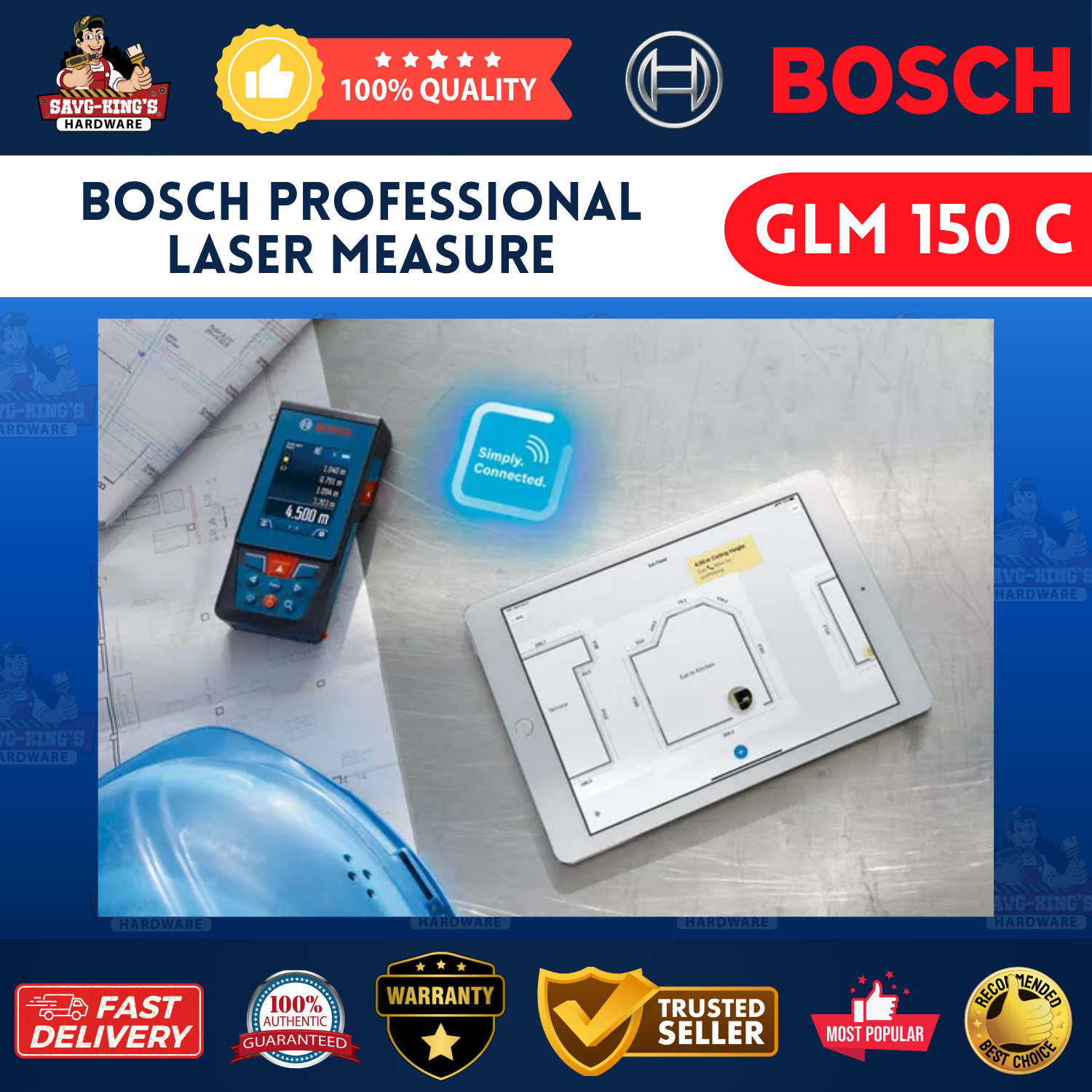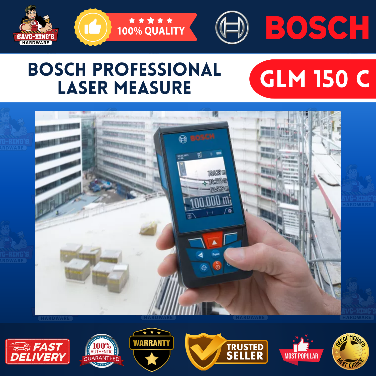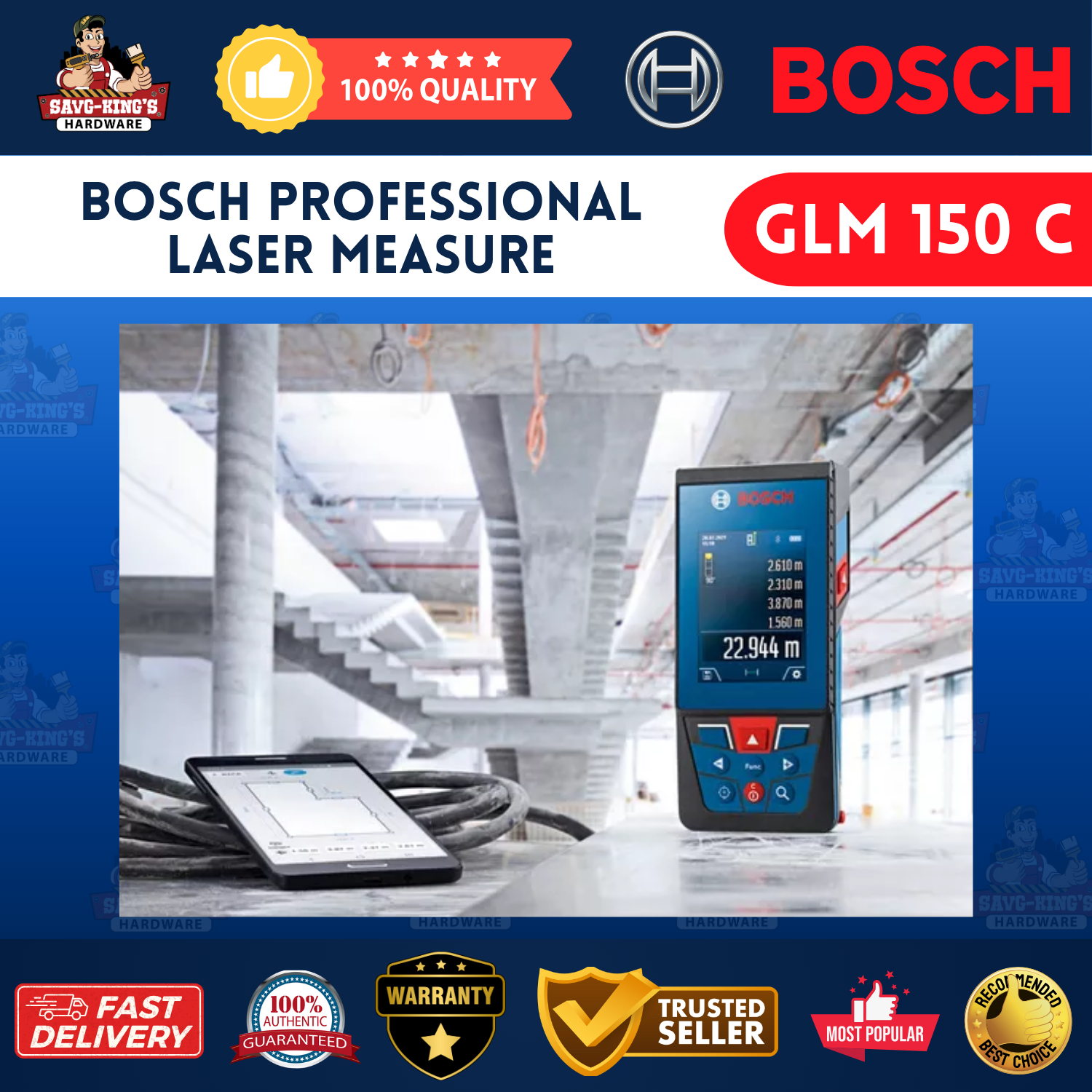 The Bosch GLM 150 C is a professional-grade laser measure designed for long-range accuracy and versatility. With a 150-meter range, built-in tilt sensor, camera viewfinder, and Bluetooth connectivity, it offers multiple measurement functions including distance, area, volume, and indirect measurements—making it ideal for demanding construction and design projects.