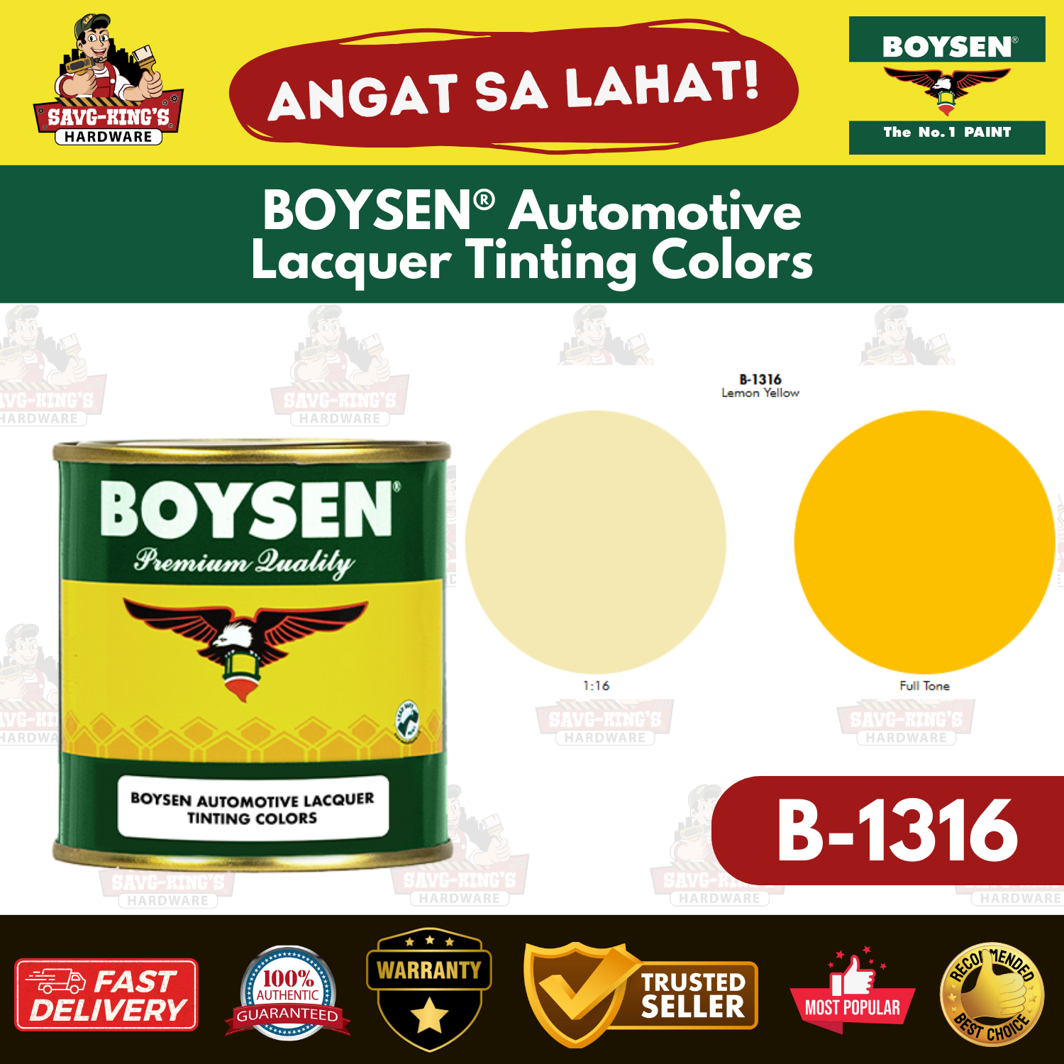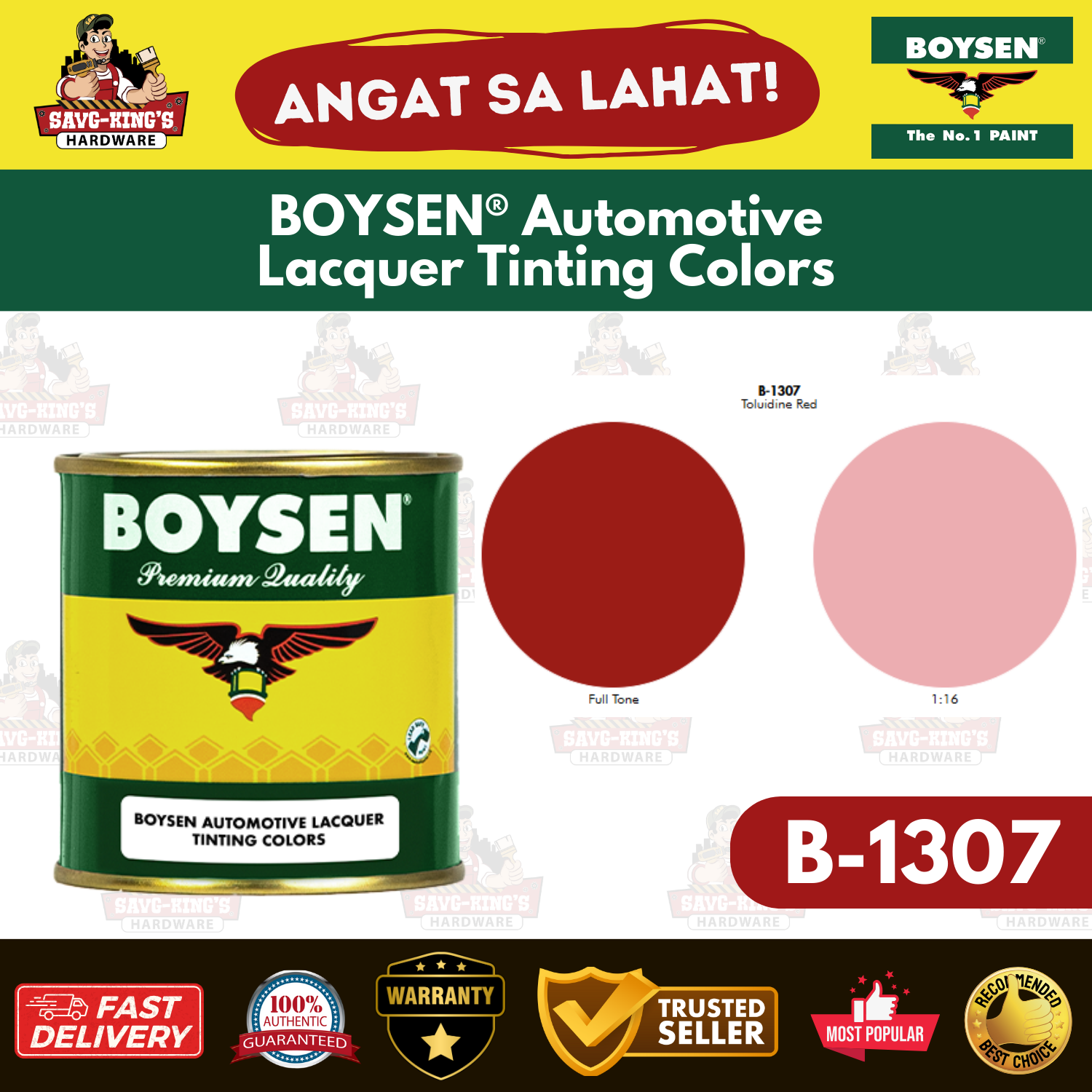 BOYSEN® Automotive Lacquer Tinting Colors are high-quality, concentrated tinting solutions specially formulated for use with lacquer-based paints. Designed to blend easily, they provide smooth and even color results from pastel to medium shades—ideal for automotive refinishing and furniture applications.