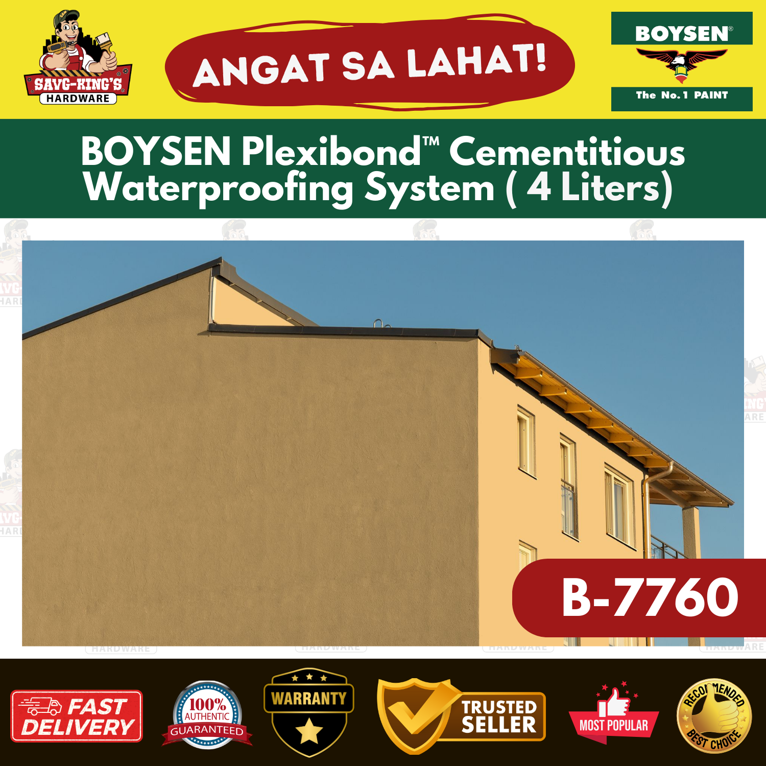 BOYSEN® Plexibond™ B‑7760 is a specially formulated acrylic polymer designed for mixing with Pozzolan or Portland cement. This combination provides excellent adhesion, water resistance, and flexibility, making it ideal for waterproofing applications on roof decks and firewalls. It also enhances the durability and aesthetics of various surfaces.