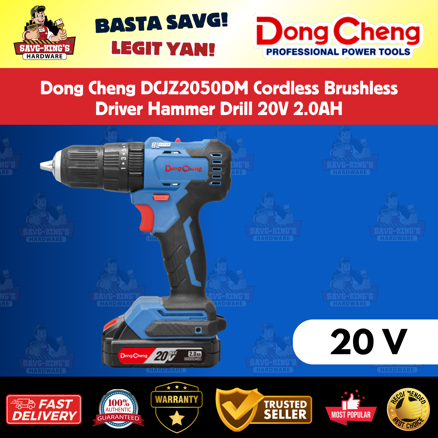 Dong Cheng DCJZ2050DM Cordless Brushless Driver Hammer Drill 20V 2.0AH