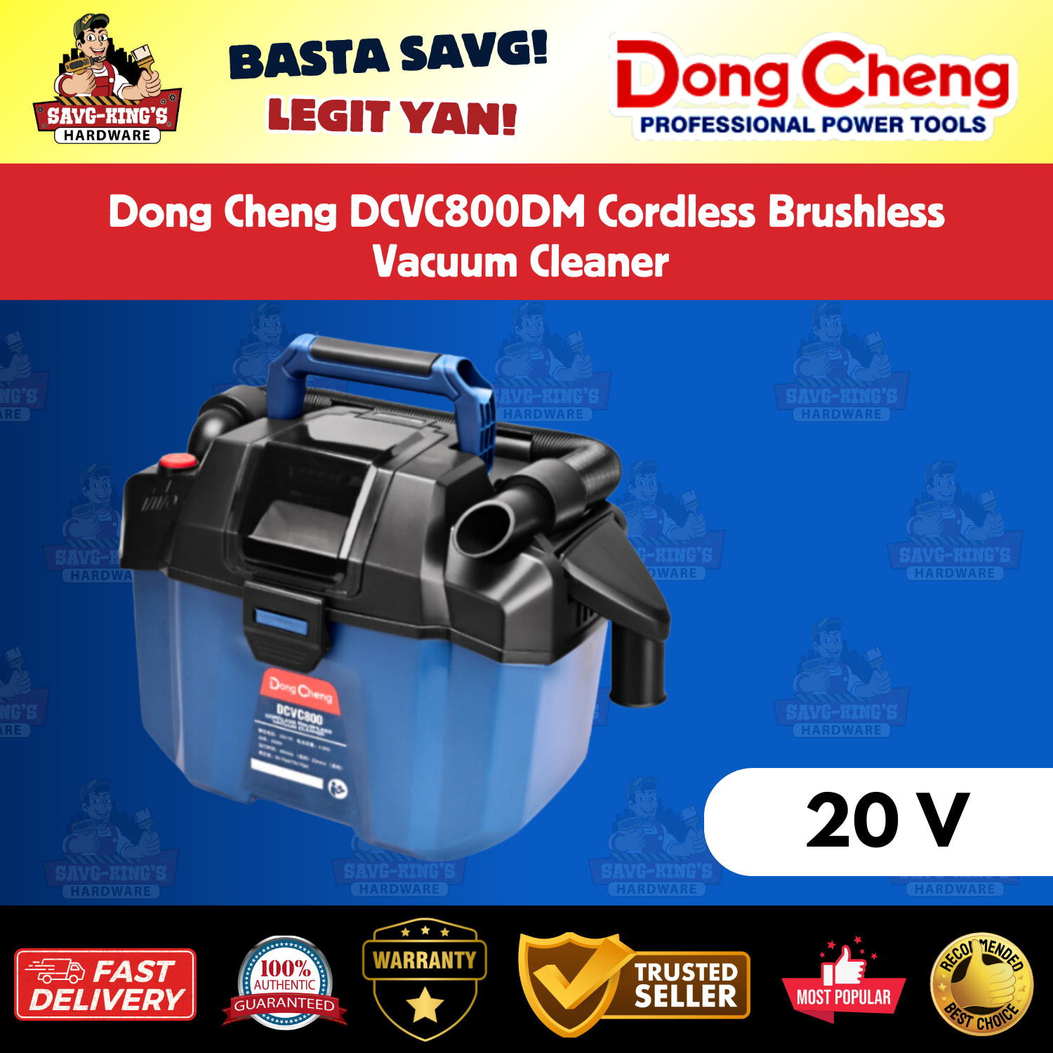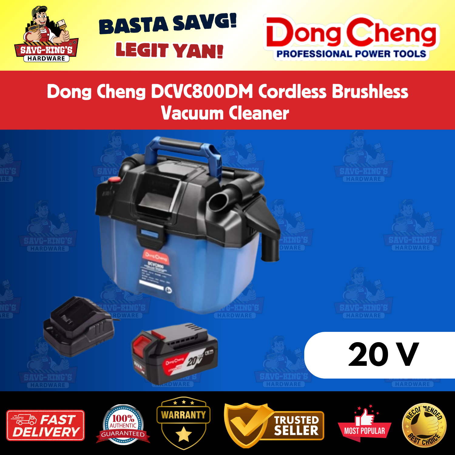The Dong Cheng DCVC800DM Cordless Vacuum Cleaner is a powerful, efficient, and portable cleaning solution designed for industrial, workshop, and home applications. Featuring a brushless motor, this vacuum delivers strong suction power (16Kpa) while maintaining high durability and low maintenance. With an 8L capacity and a cordless 20V battery system, this vacuum is perfect for wet and dry cleaning tasks.