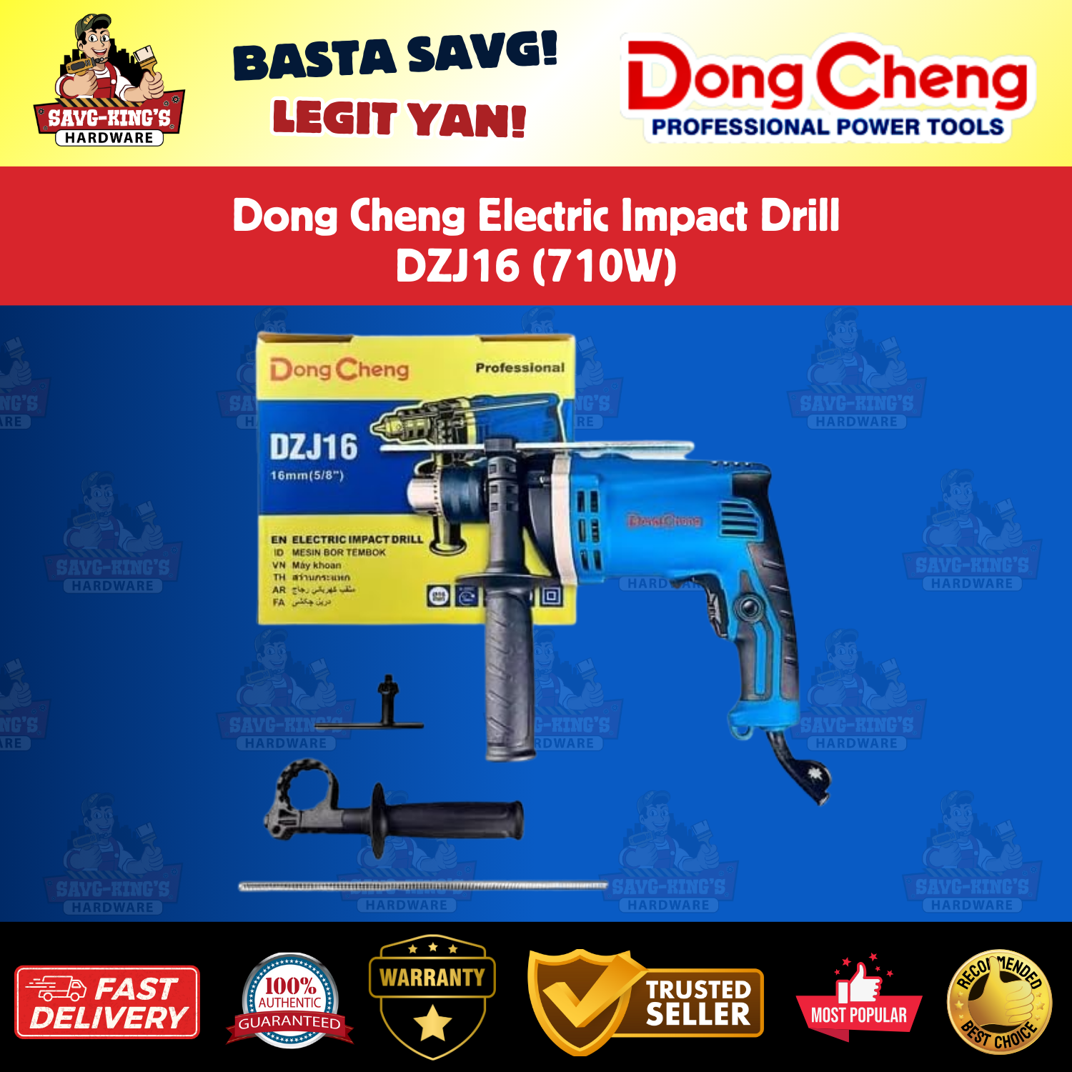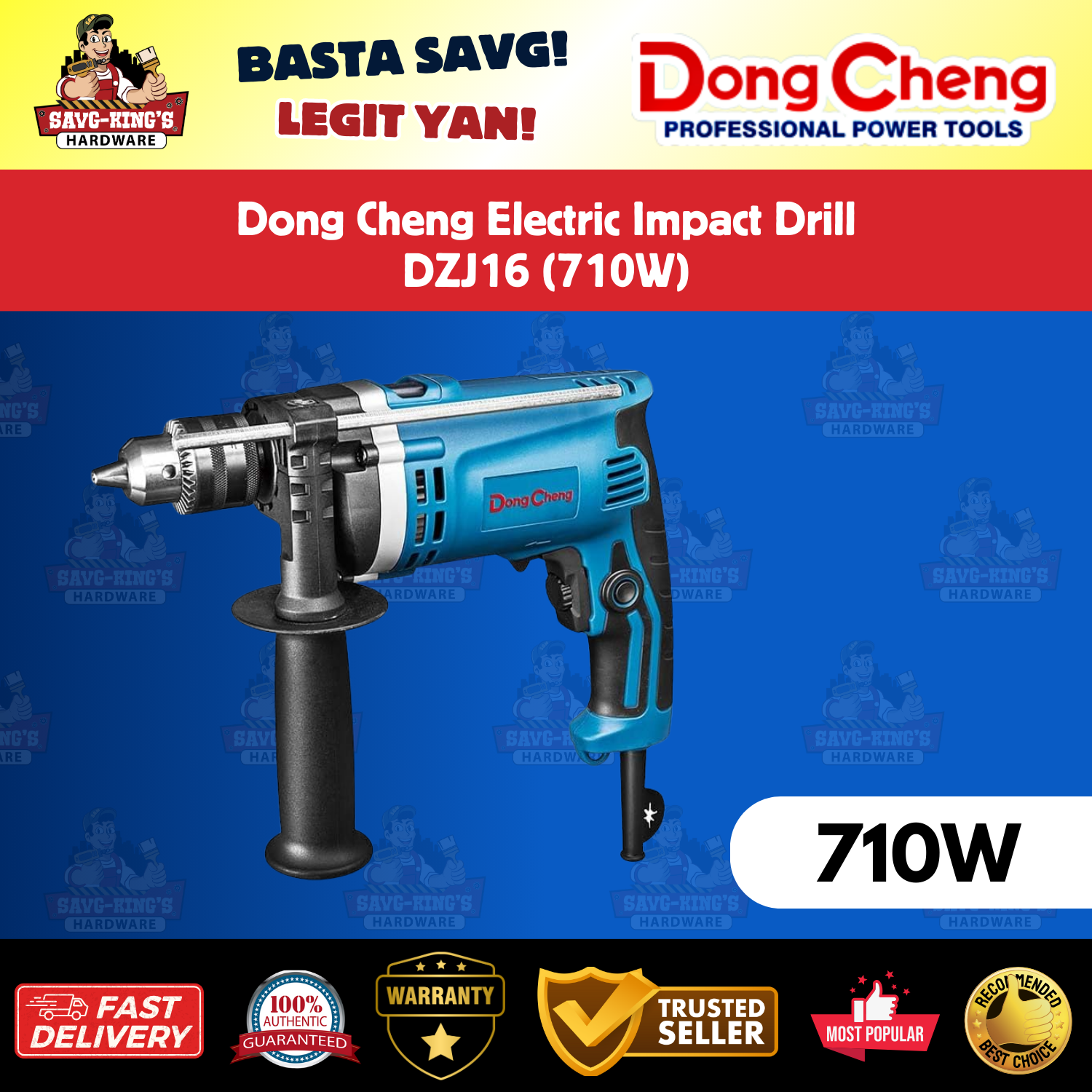The Dong Cheng DZJ16 Electric Impact Drill is a reliable, high-performance tool designed for professionals and DIY enthusiasts. With its powerful 710W motor and durable build, this drill offers exceptional power, smooth operation, and long-lasting performance. It is engineered for efficiency, low vibration, and maximum control during use, making it ideal for a wide range of applications.
