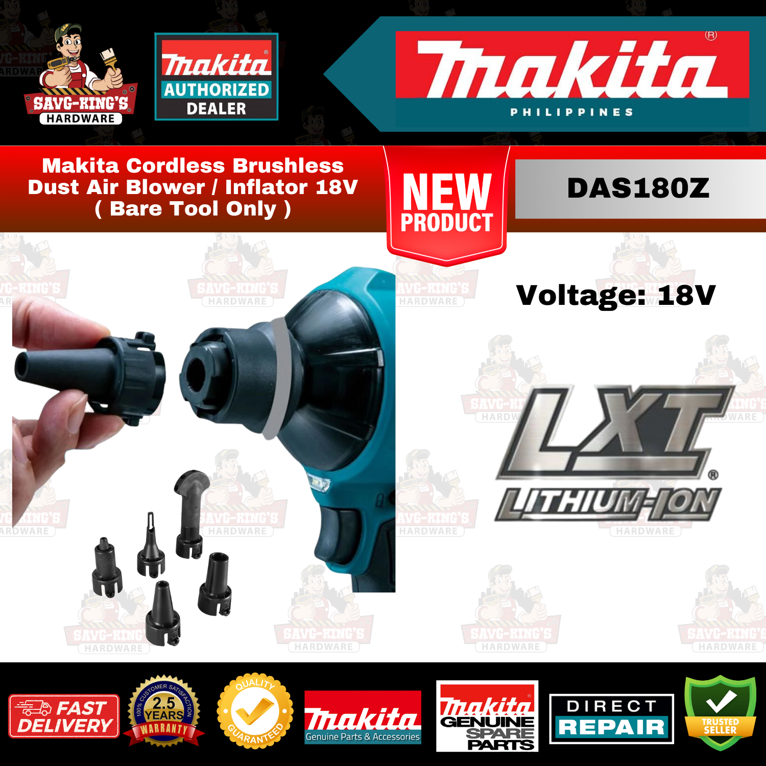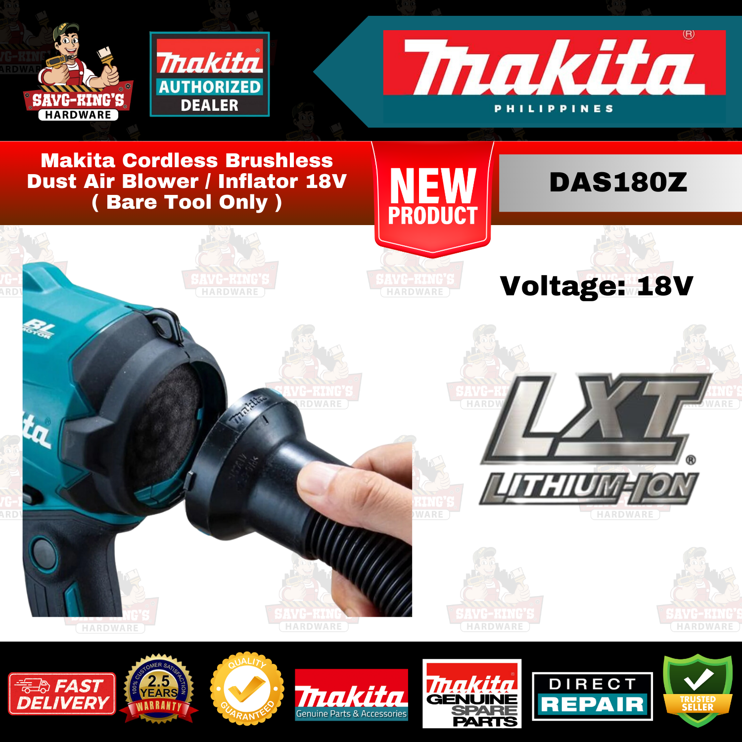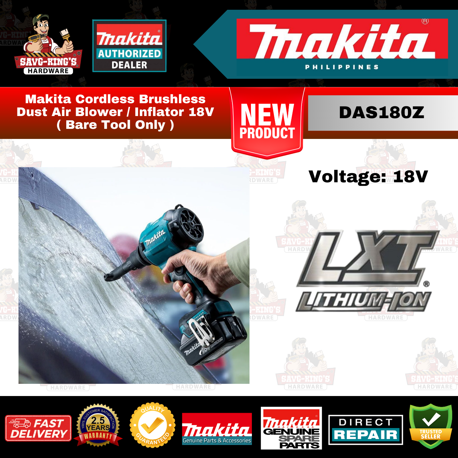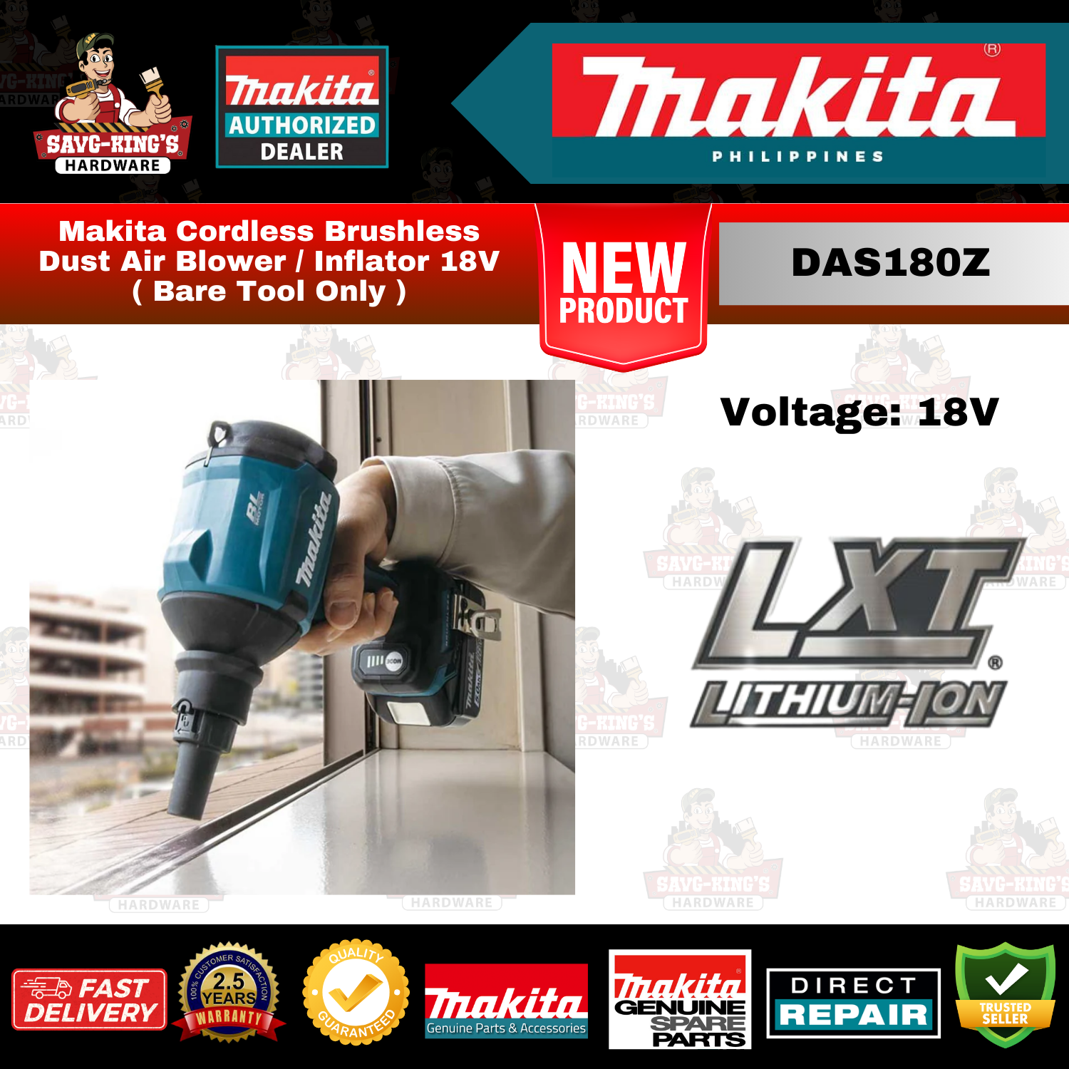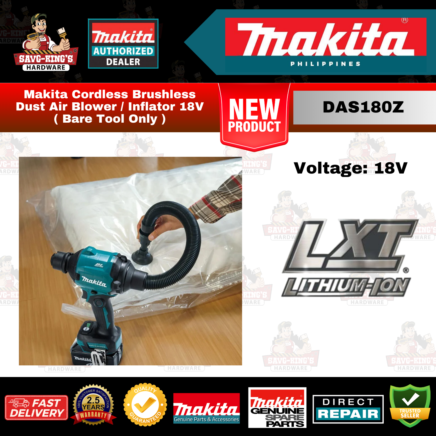 The Makita DAS180Z is a versatile 18V Cordless Brushless Dust Air Blower and Inflator, designed to handle a range of tasks, including dust removal, inflating pool toys, inner tubes, and cleaning air filters. It is lightweight, easy to operate, and ideal for various maintenance and cleaning applications. Battery and charger are sold separately.