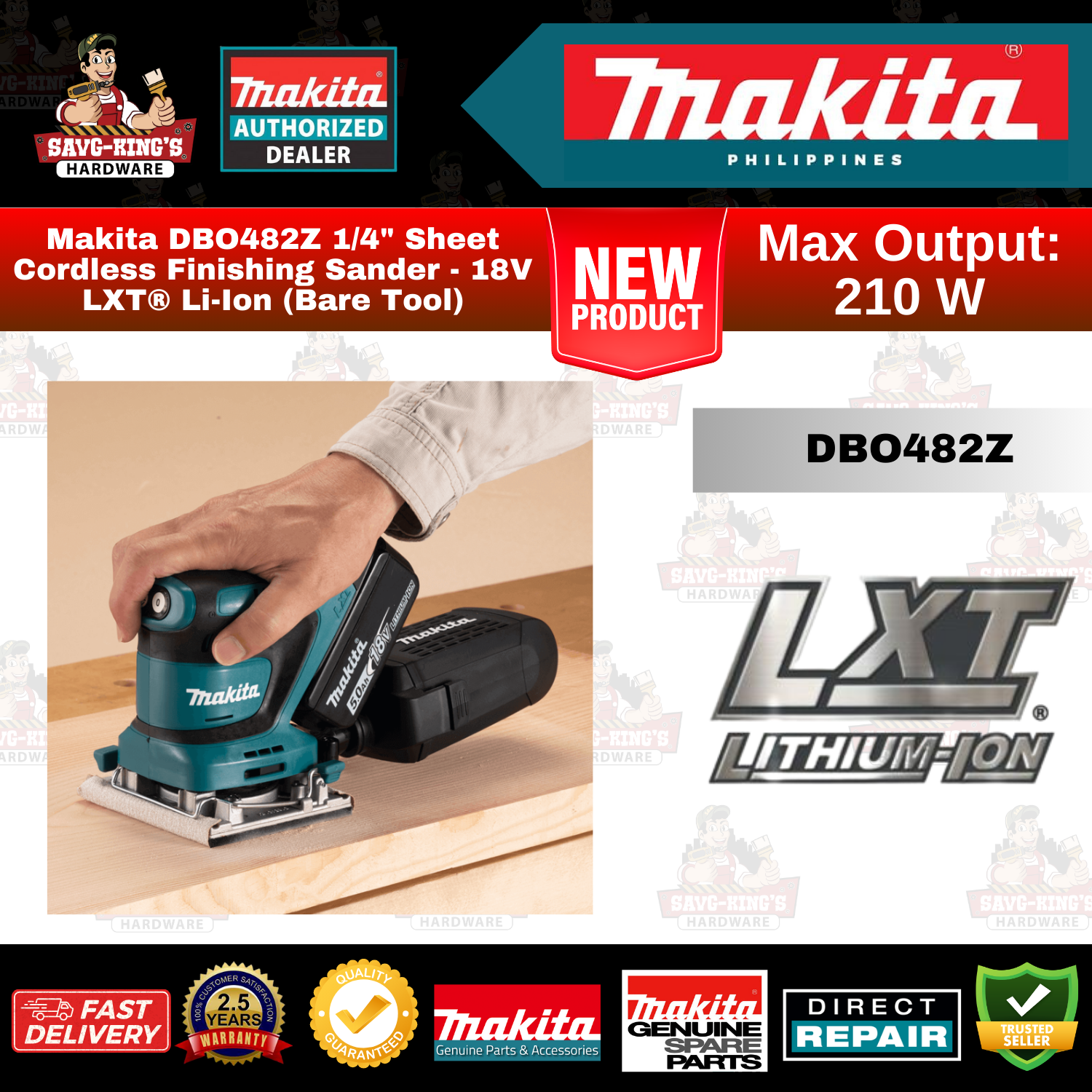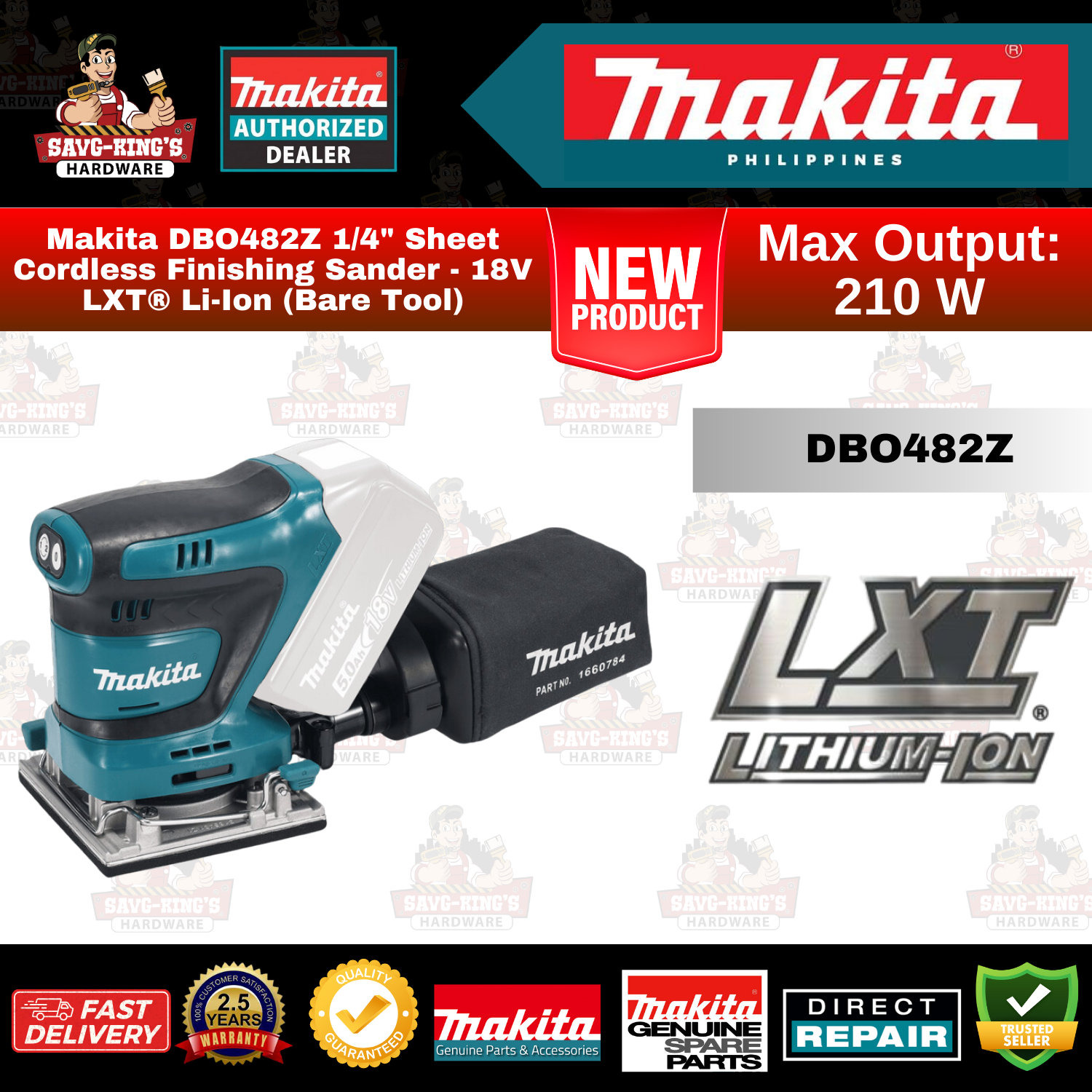 Makita DBO482Z 1/4″ Sheet Cordless Finishing Sander – 18V LXT® Li-Ion (Bare Tool)