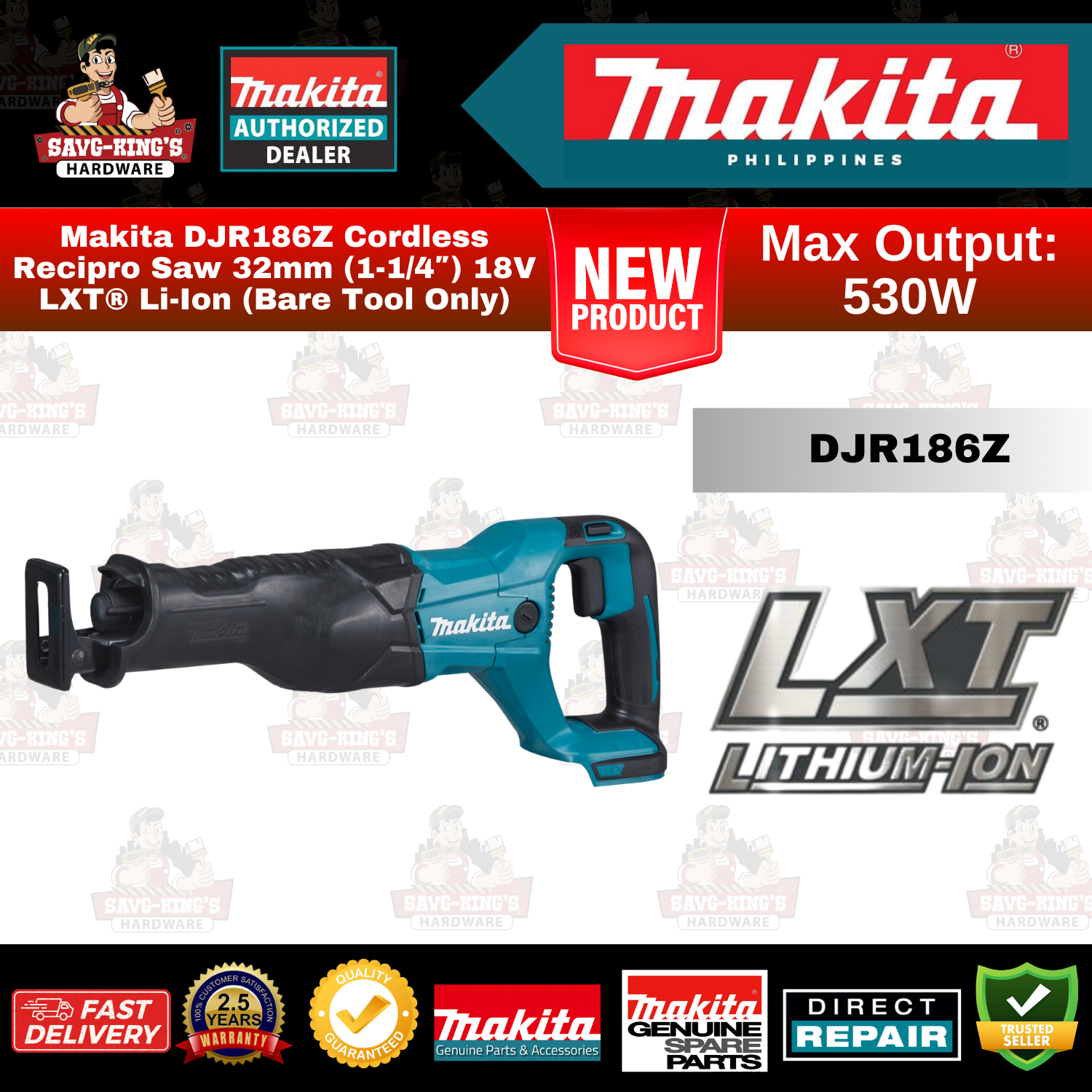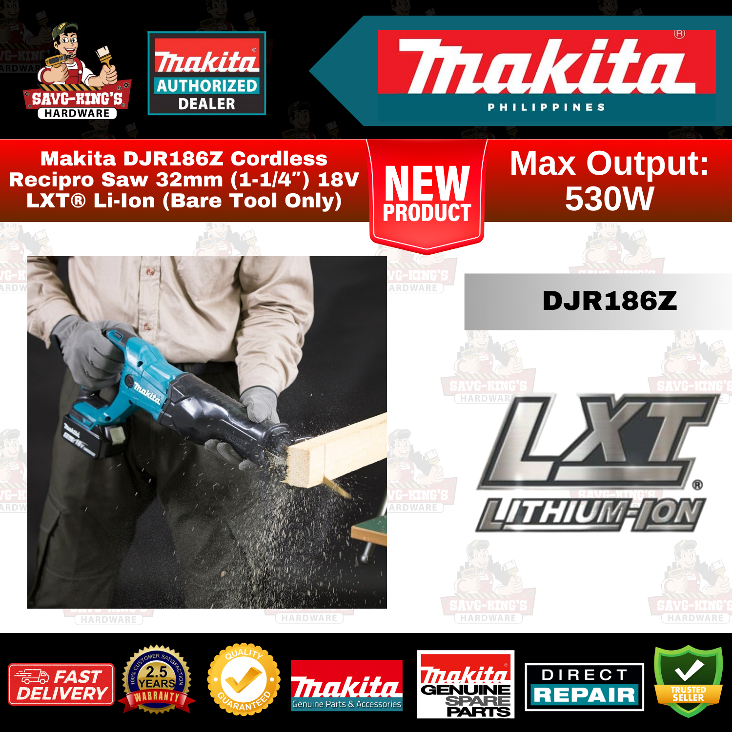 Makita DJR186Z Cordless Recipro Saw 32mm (1-1/4″) 18V LXT® Li-Ion (Bare Tool Only)
