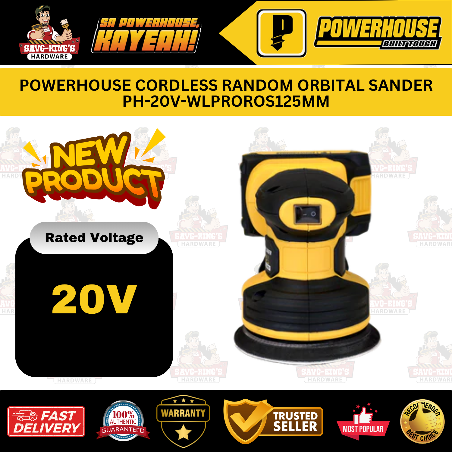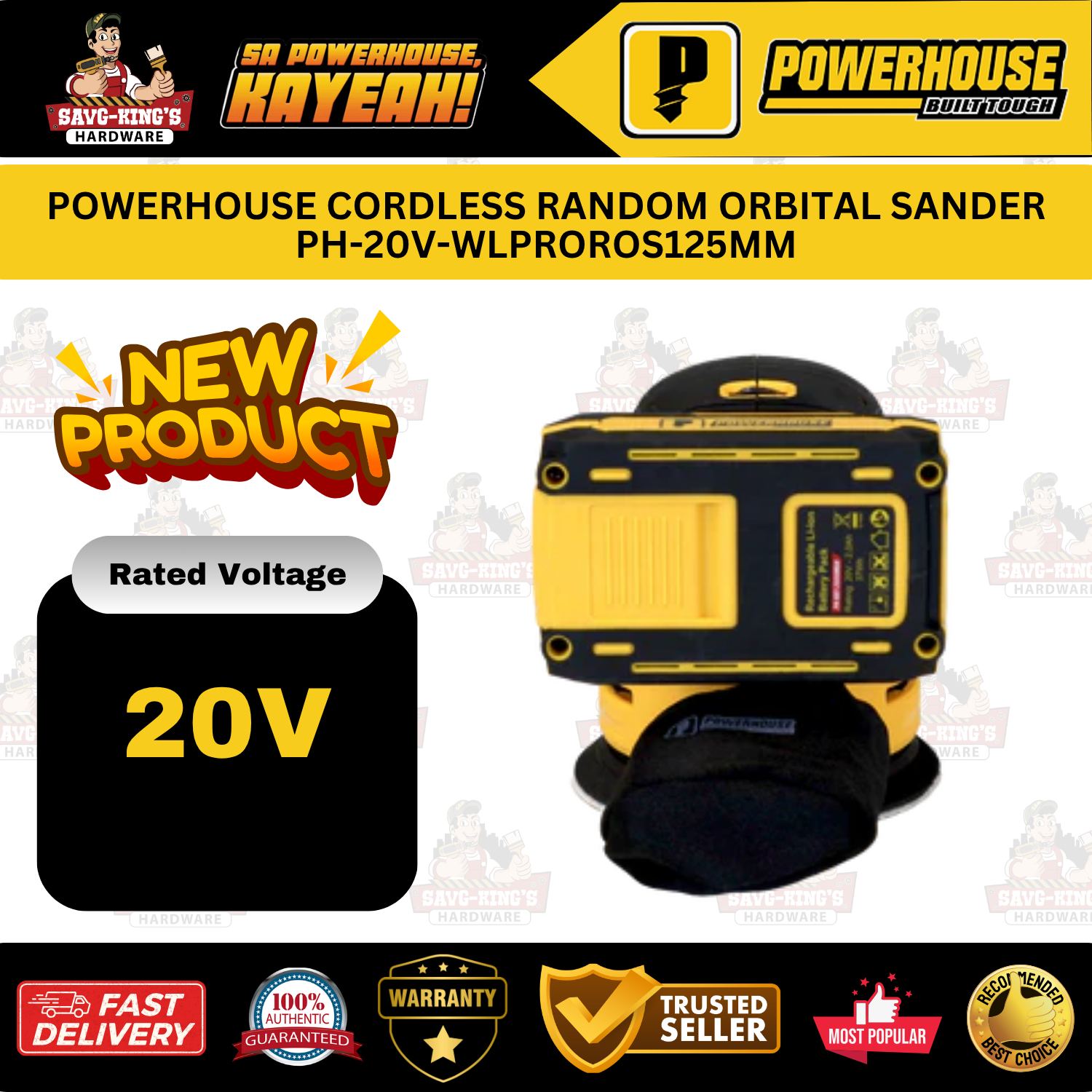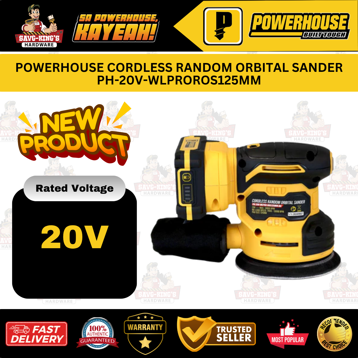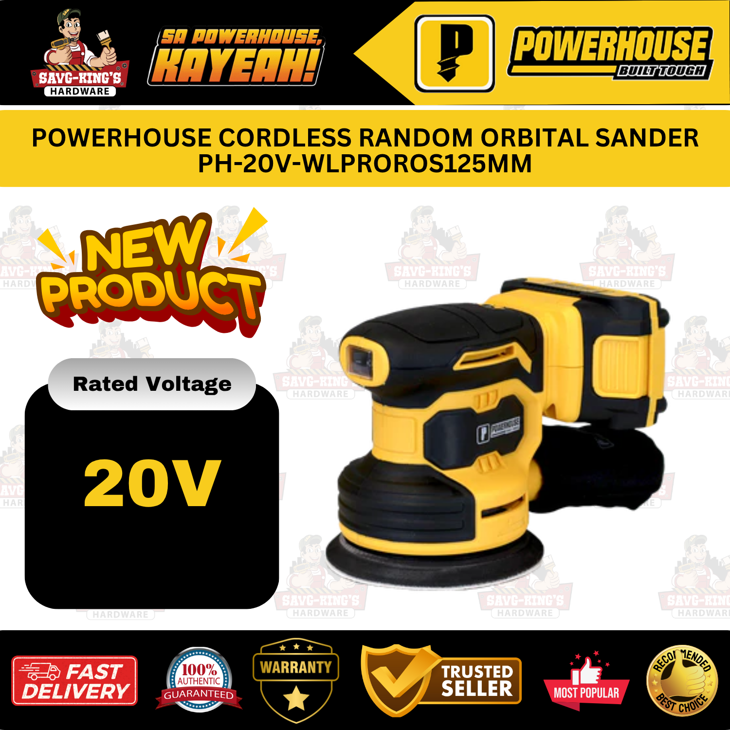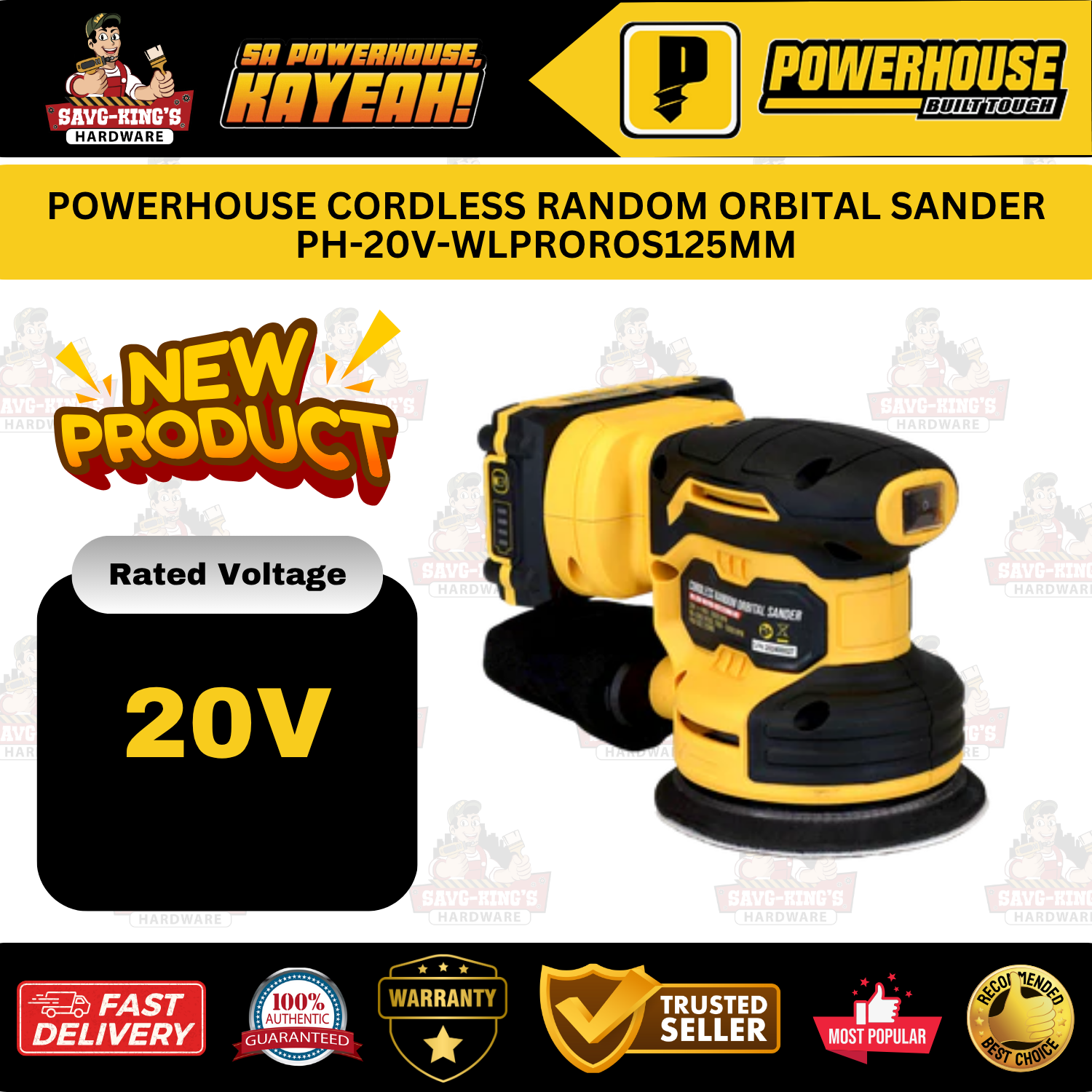 POWERHOUSE PH-20V-WLPROROS125MM Cordless Random Orbital Sander