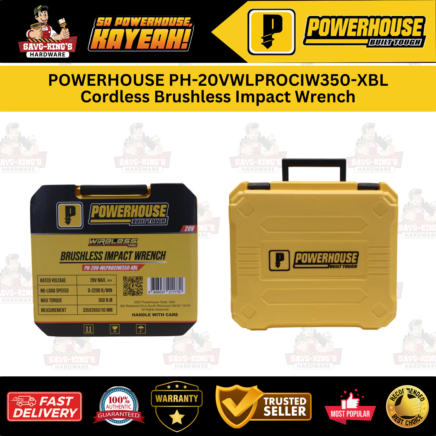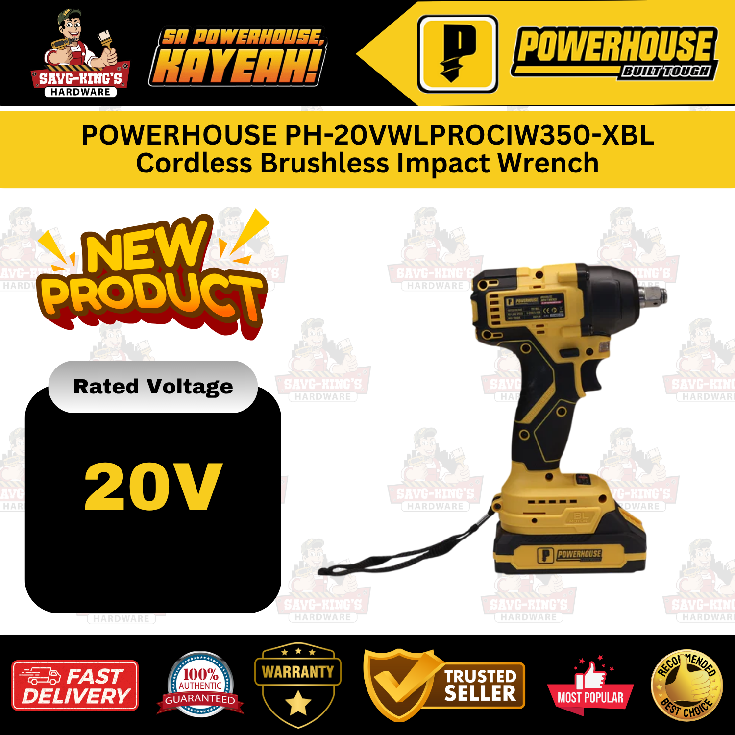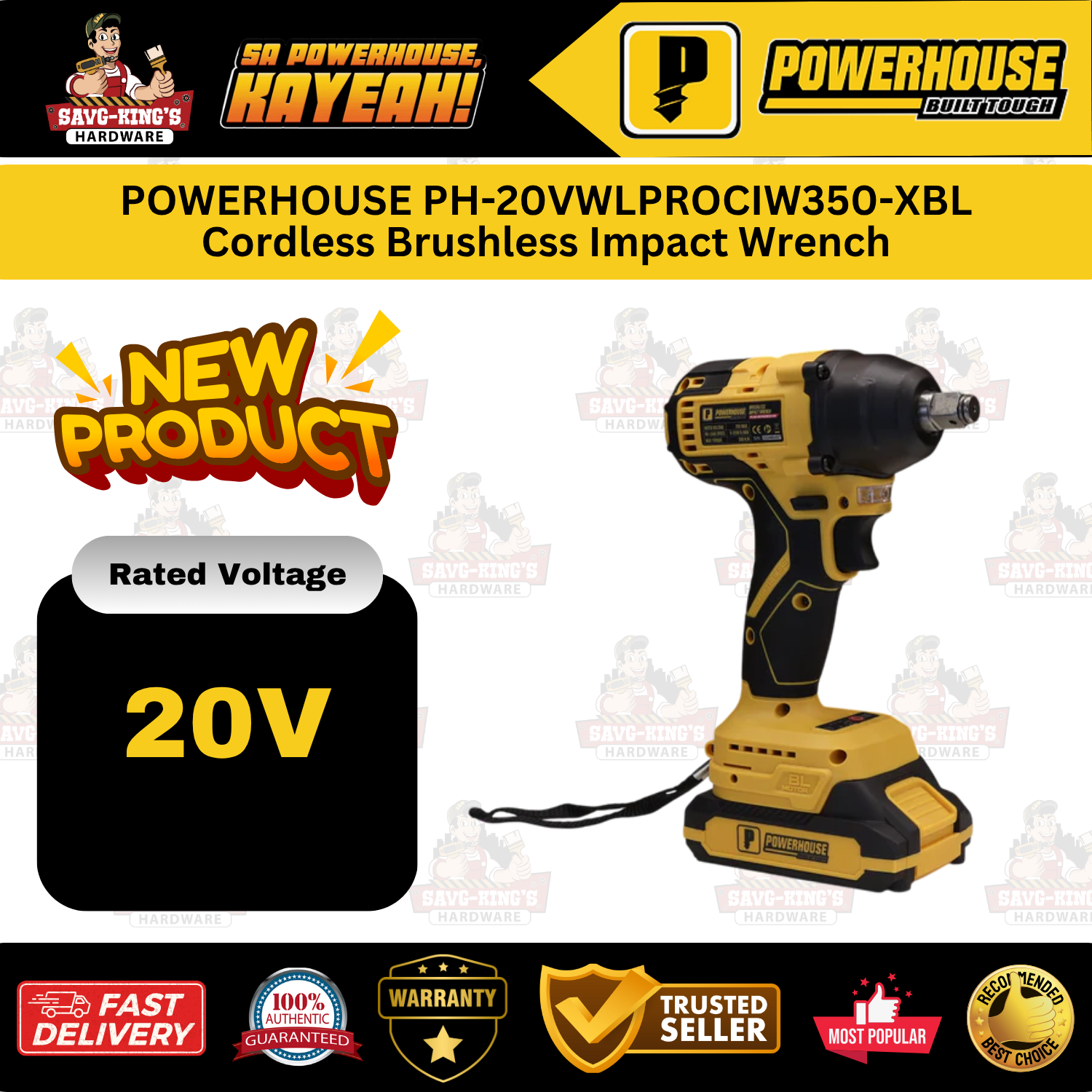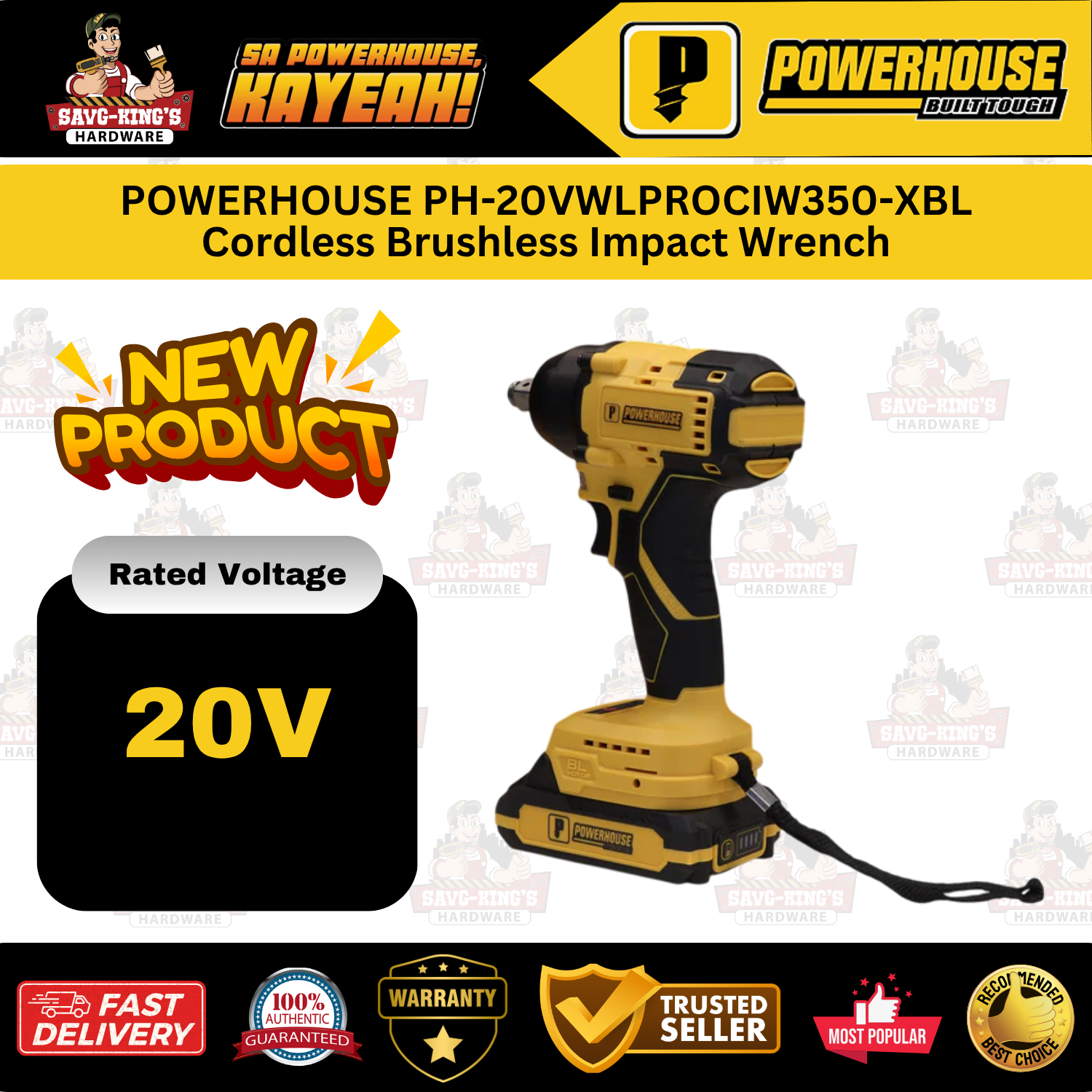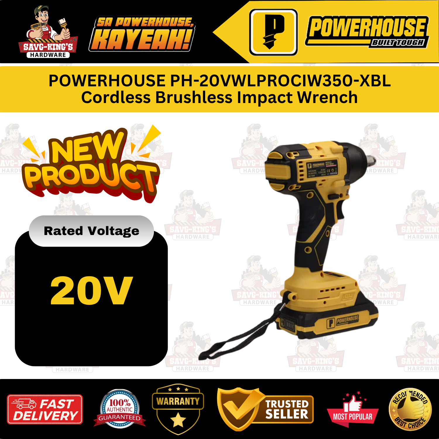 POWERHOUSE PH-20VWLPROCIW350-XBL Cordless Brushless Impact Wrench